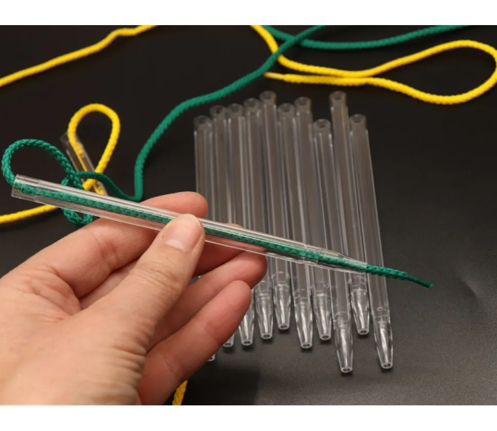 12 crayons pour Jeu de Laçage. Crayons en plastique transparent pour enfiler le fil ou le lacet et ainsi faciliter le laçage des enfants. Accessoire de jeu en complément de notre set de plateaux de laçage pour jouer à plus d’enfants ou pour remplacer les crayons perdus.