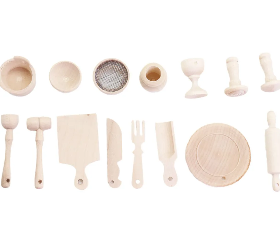 15 ustensiles miniatures en bois / accessoires pour la maison :