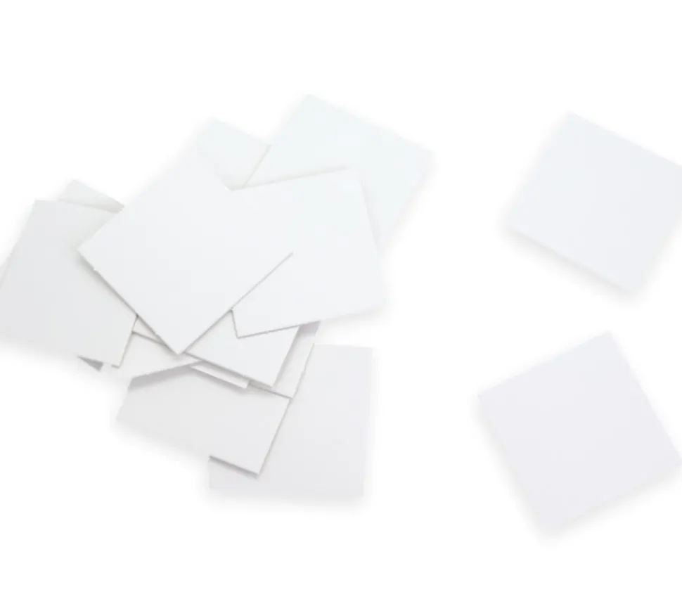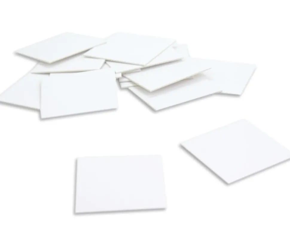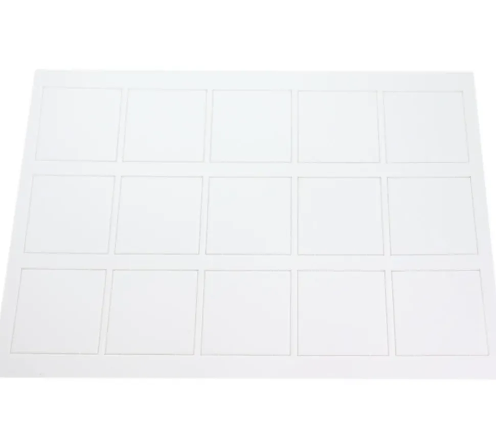Lot de 15 tuiles carrées en carton blanc rigide, format 50 x 50 mm.