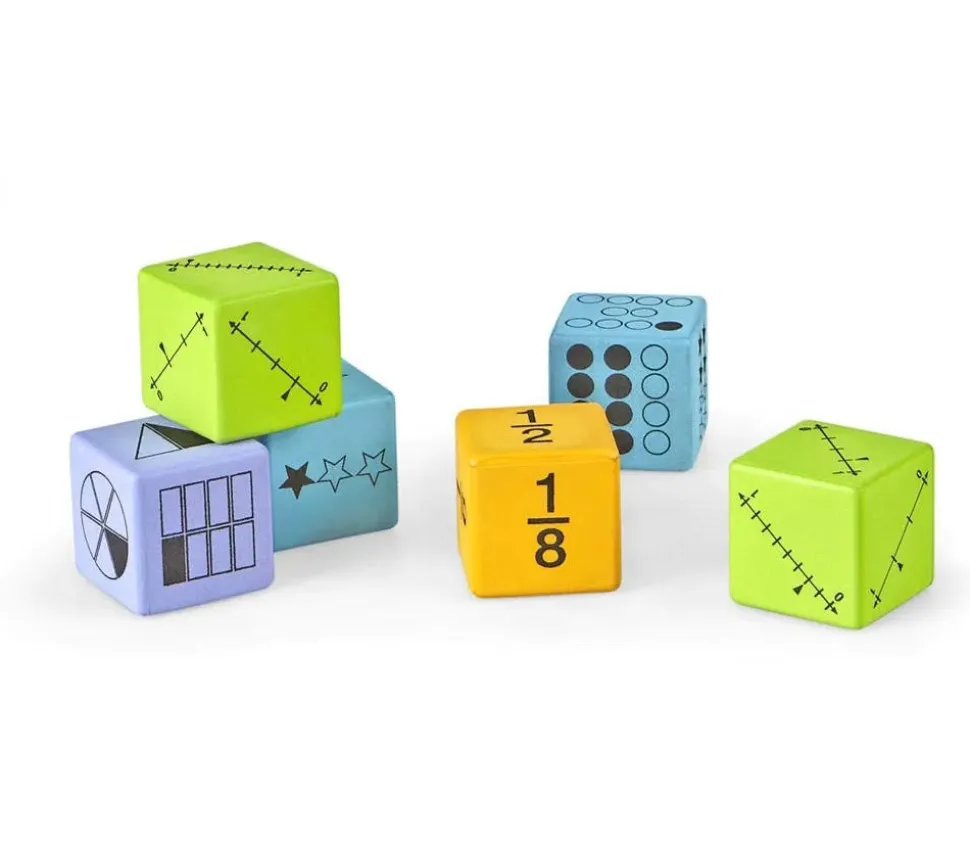 Set de 16 dés mousse des fractions pour apprentissage. Représentations mathématiques multiples.