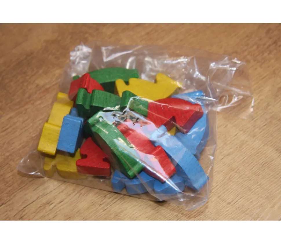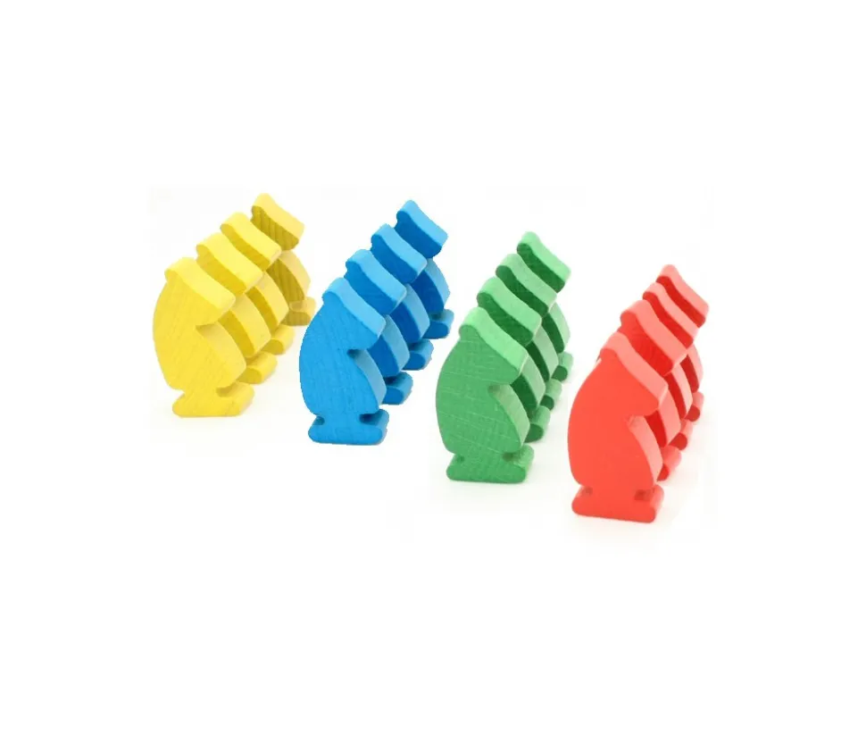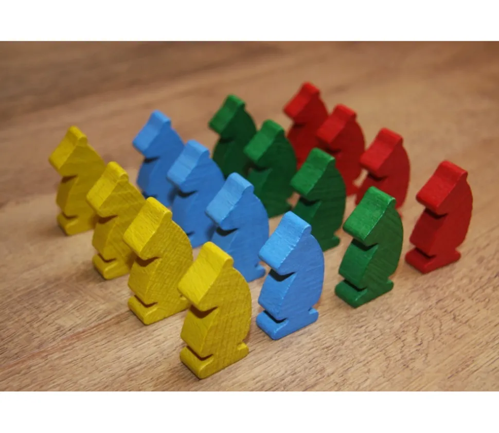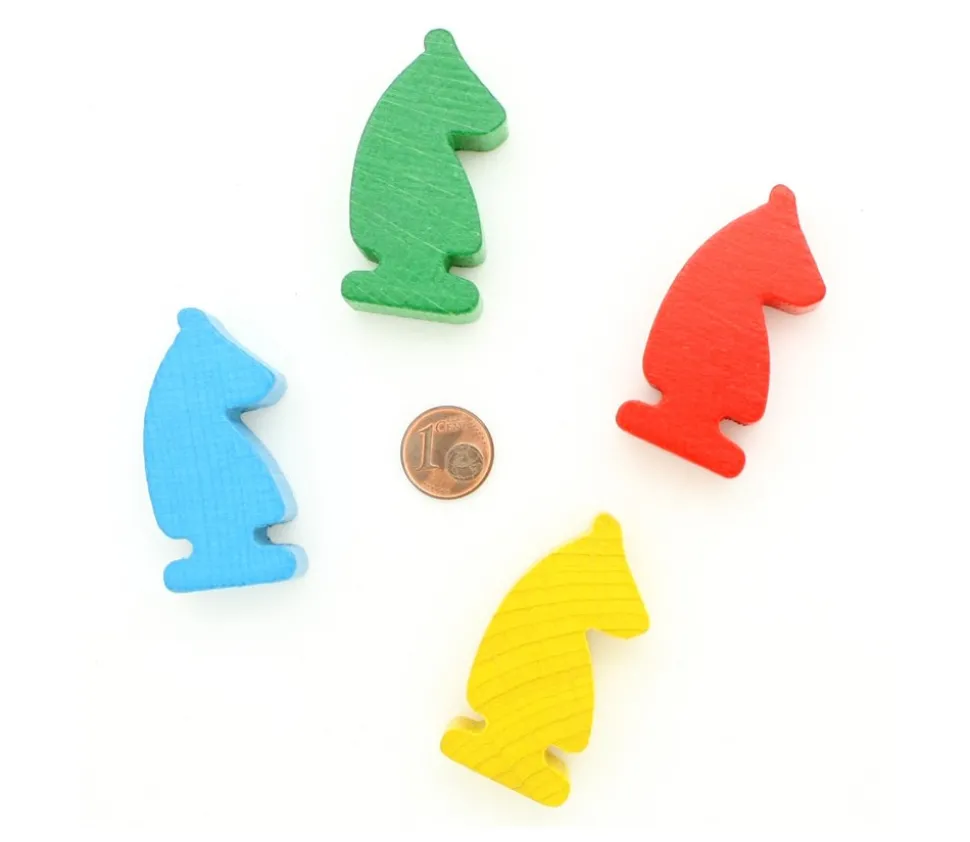 Pion en forme de cheval pour le Jeu de Dada. Lot de 16 pions en bois pour le jeu des petits chevaux. 4 couleurs : rouge, vert, jaune, bleu.