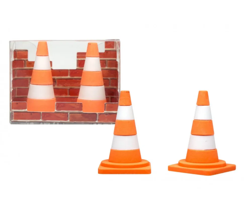 Mini cônes de chantier de 4 cm de haut. Ce set comprend 2 cônes identiques.