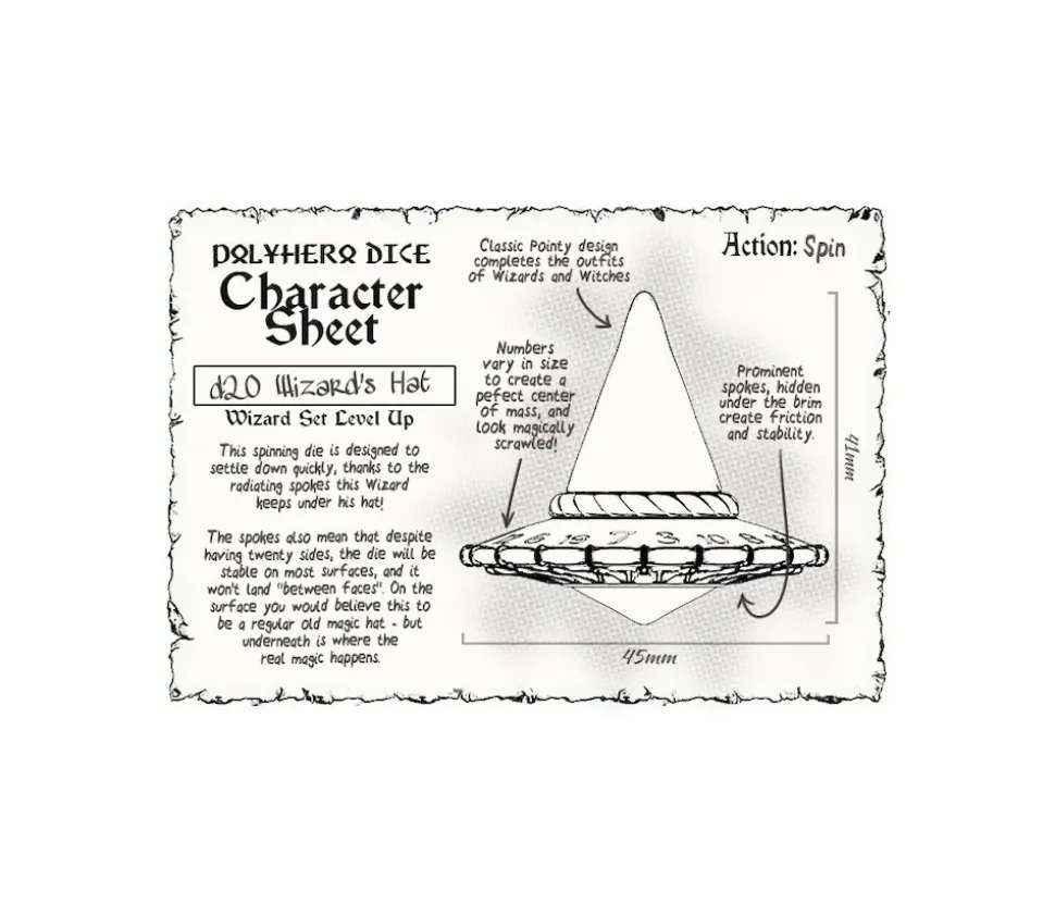 2 dés multifaces originaux D20 e D2 en forme de chapeau de sorcier et un dé 2 faces en forme de livre magique grimoire de sorcier !