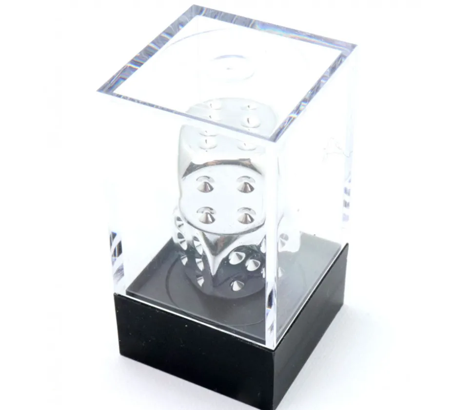 Dés base plastique recouvert d’une fiche couche de métal argent.