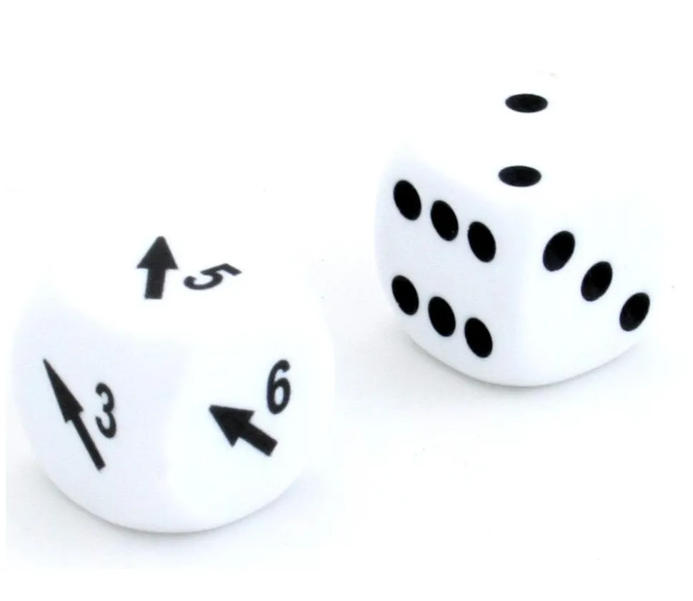 - 1 dé en plastique de 16 mm coins arrondis faces avec flèches et chiffres