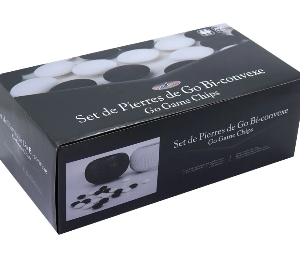 ban. Forme traditionnelle du jeu de go, le bas et le haut d’une pierre sont arrondis. Les pions de go noir et blanc sont lisses au toucher grâce à la résine synthétique. Agréables et facile à attraper.