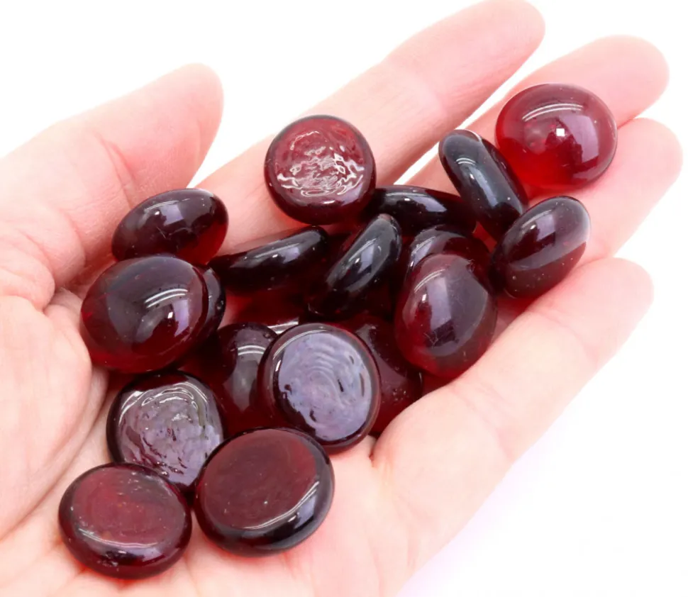Galets en verre translucide rouge pour de nombreuses utilisations :