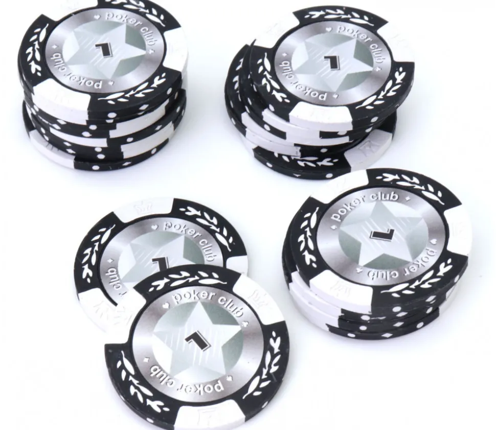 Lot de jetons de marquage des points poker noir et blanc valeur 1.