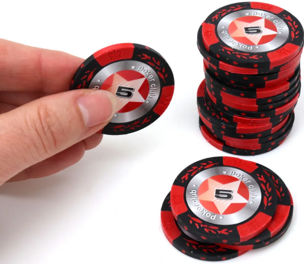 Token poker valeur 5 pour vos tournois et jeux de casino.