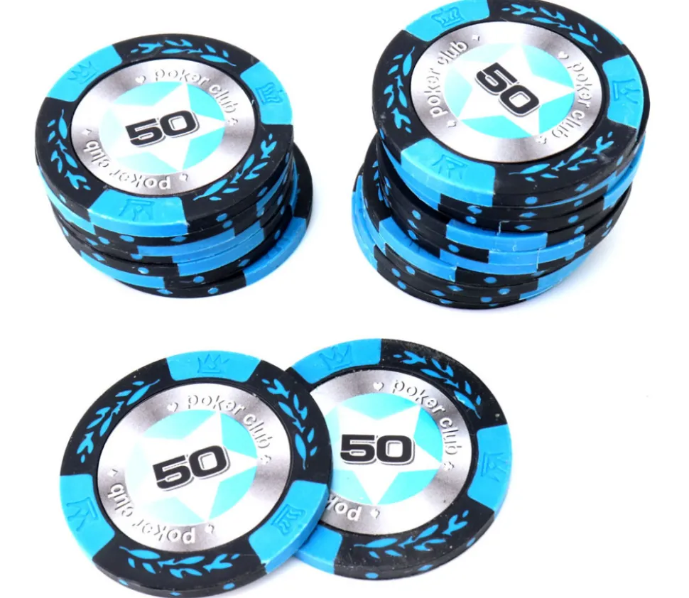 Poker chips valeur 50 bleu et noir pour jouer comme au casino.