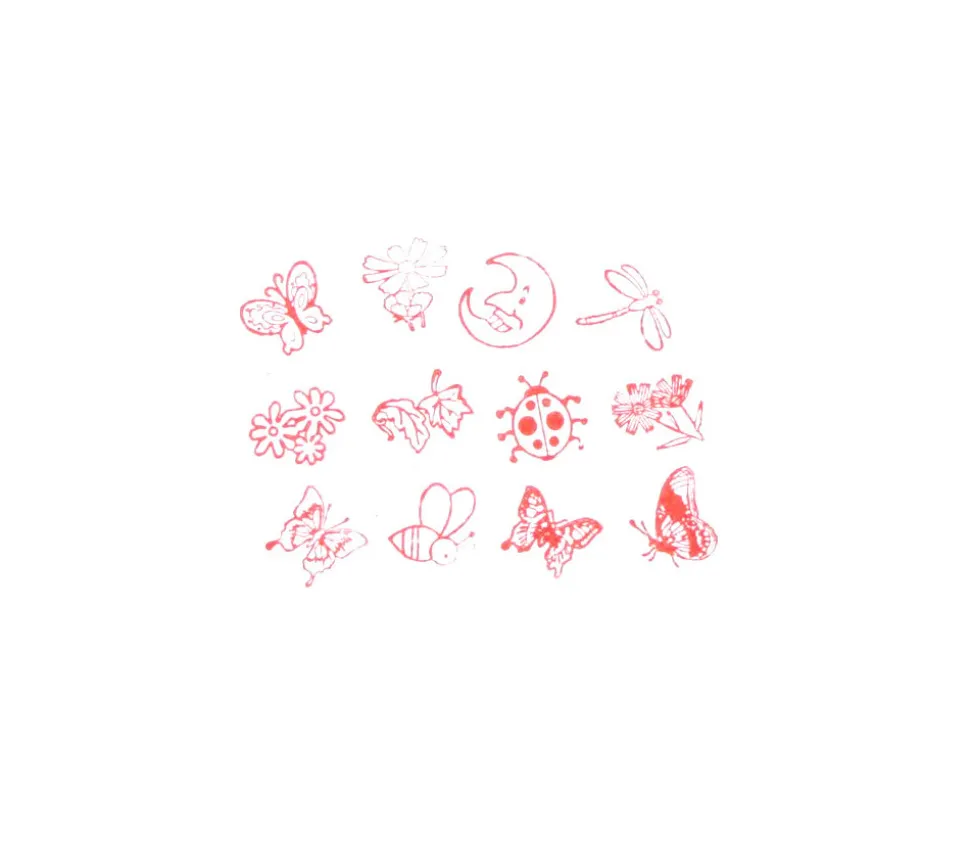 - 16 mini Tampons encreurs insectes et éléments de la nature 1 x 1 x 3 cm.