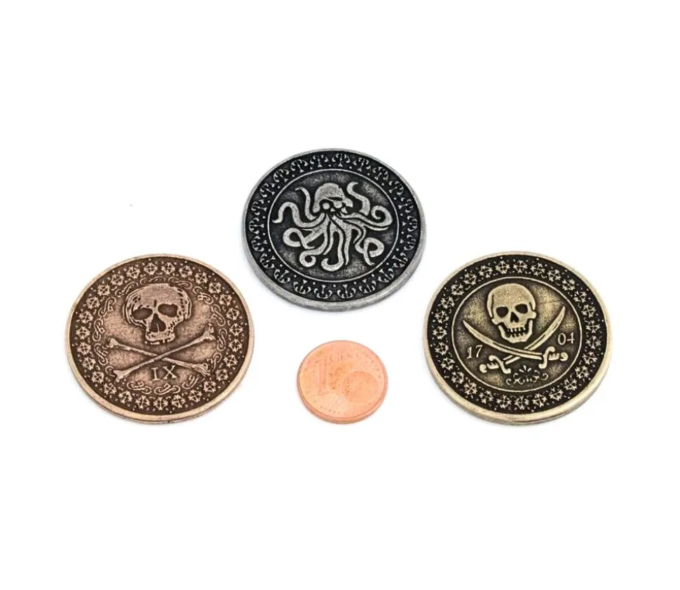 Pièces en métal Pirate. Coins 35 mm de diamètre.