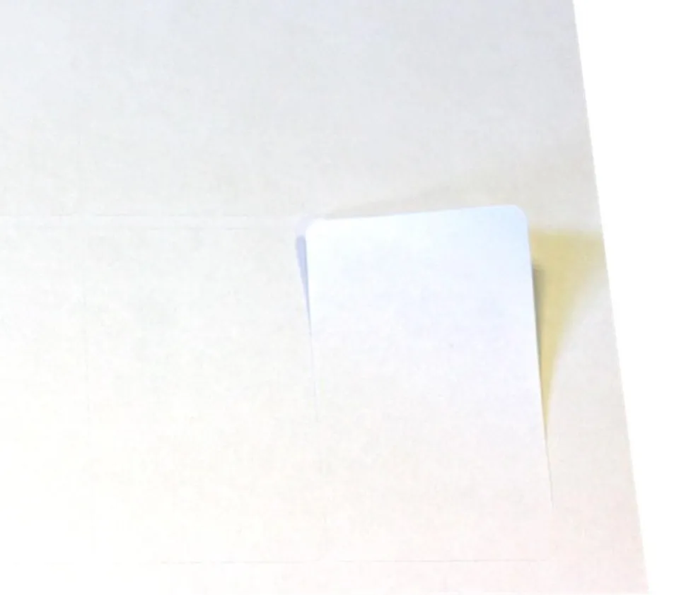 Autocollants rectangles de 63.5 x 38.1 mm de coté, blancs pour personnaliser plus facilement vos cartes à jouer. Coins légèrement arrondis. Parfaites pour la personnalisation de vos mini cartes à jouer.