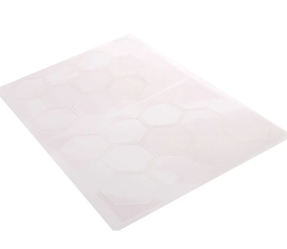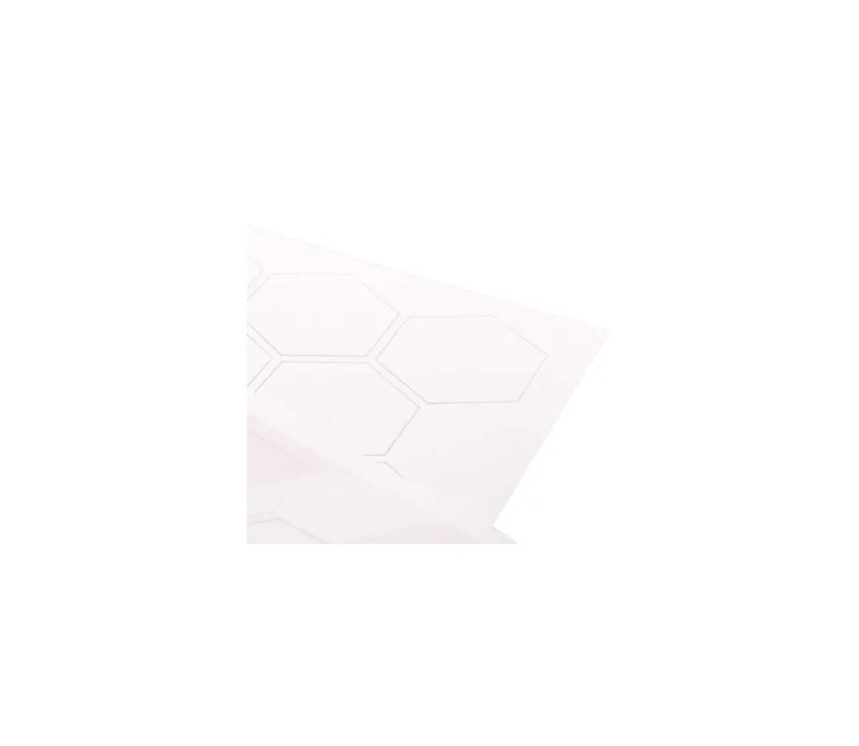 Feuille A4 avec prédécoupage de 22 hexagones vierges. Papier standard au recto et plastifié au verso.