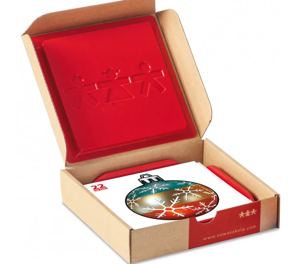 24 grandes cartes carrées illustrées avec images de jouets, Noël, famille et émotions.