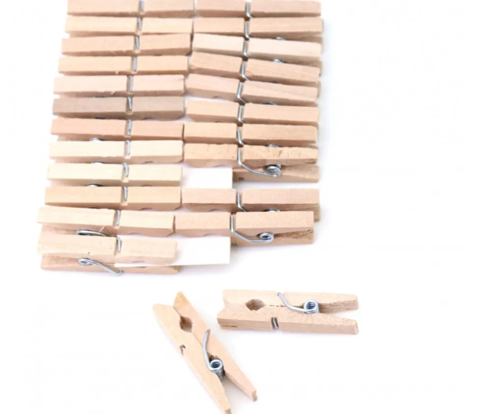 24 mini pinces à linge en bois naturel.