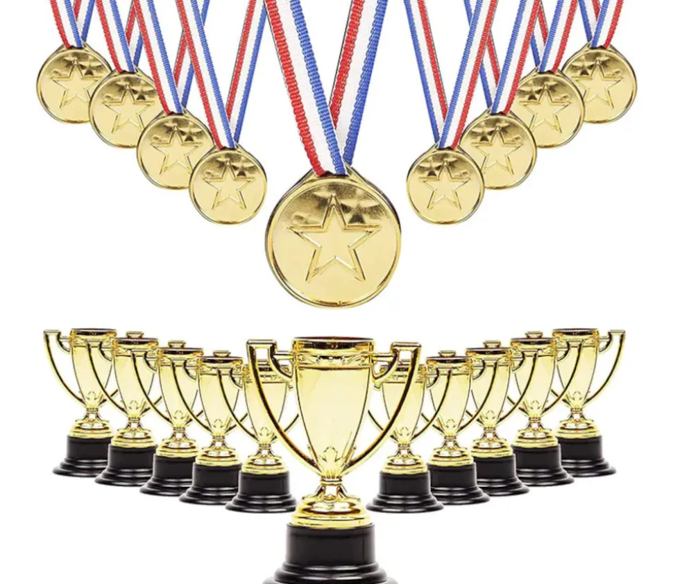 Lot de 24 récompenses : 12 Médailles et 12 Trophées en plastique