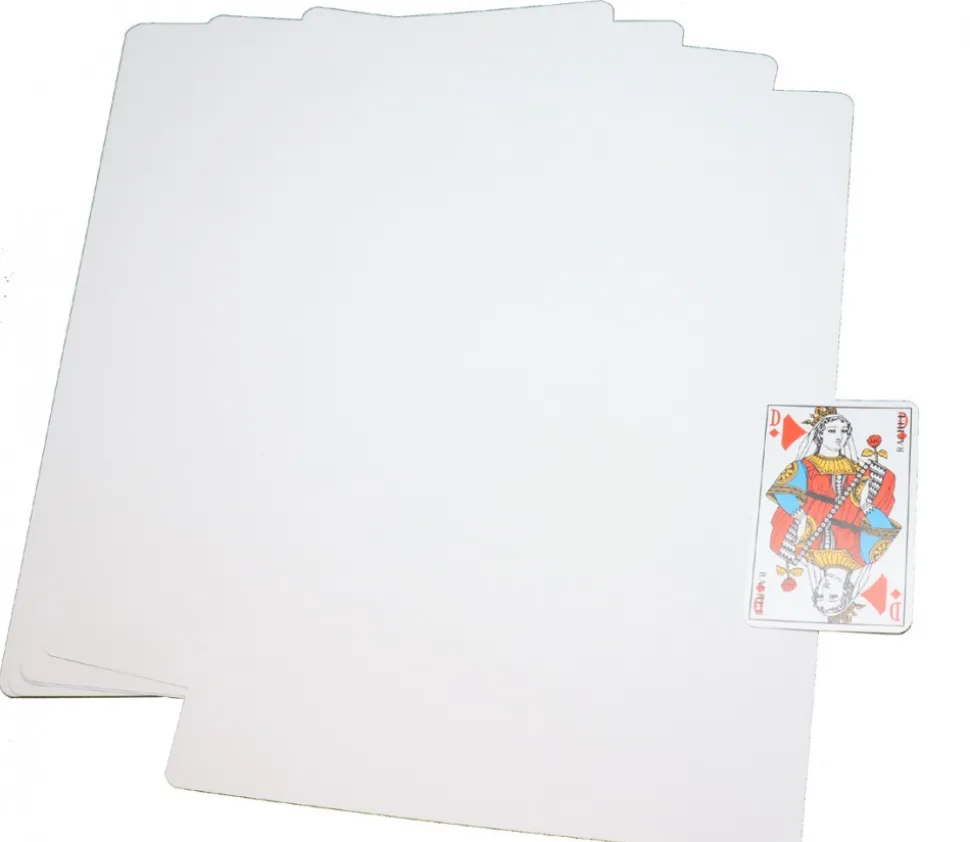 Set 30 de Cartes à jouer blanches de 21 x 29.7 cm avec les coins arrondis (radis 7 mm). Grammage 300 g. Les deux côtés sont blancs.