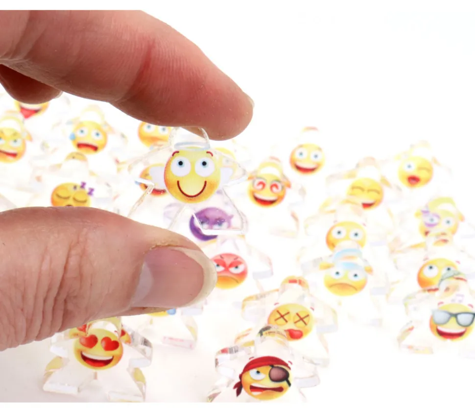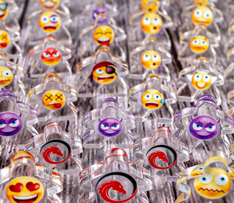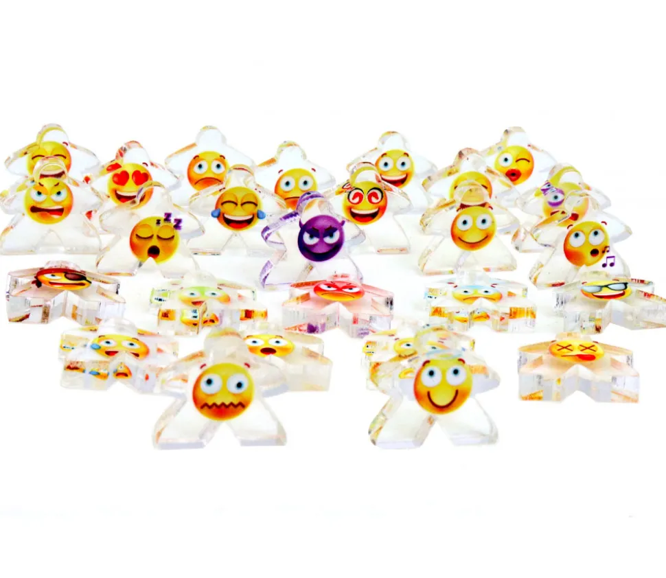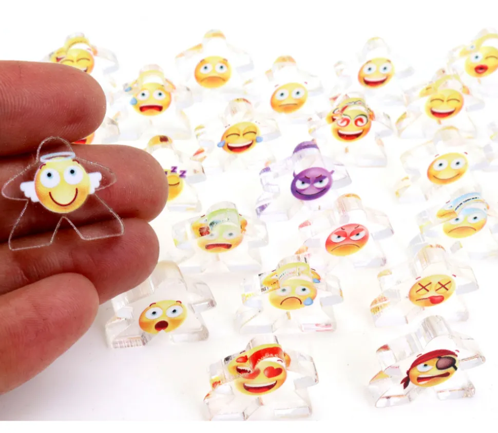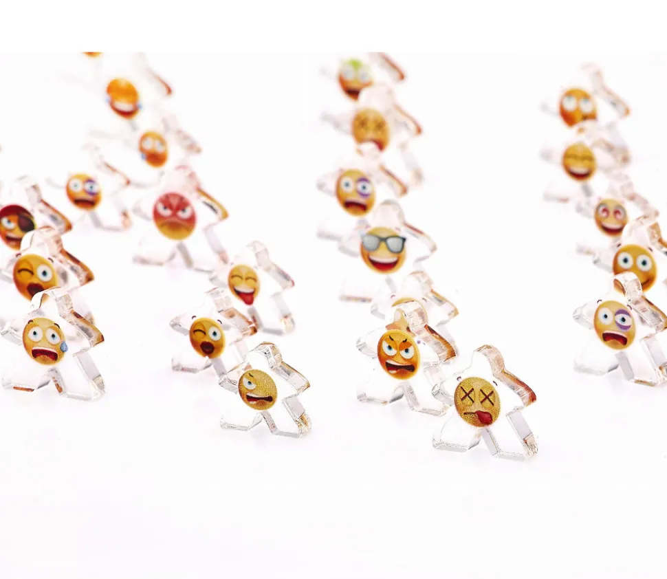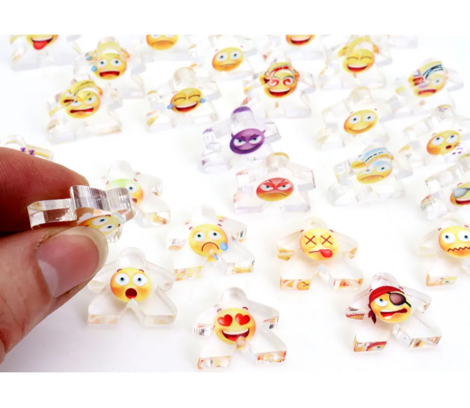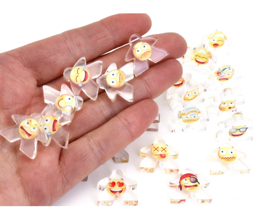 27 jetons meeple Emoji en plexiglas. Exprimez vos émotions grâce à ces pions émoticône !