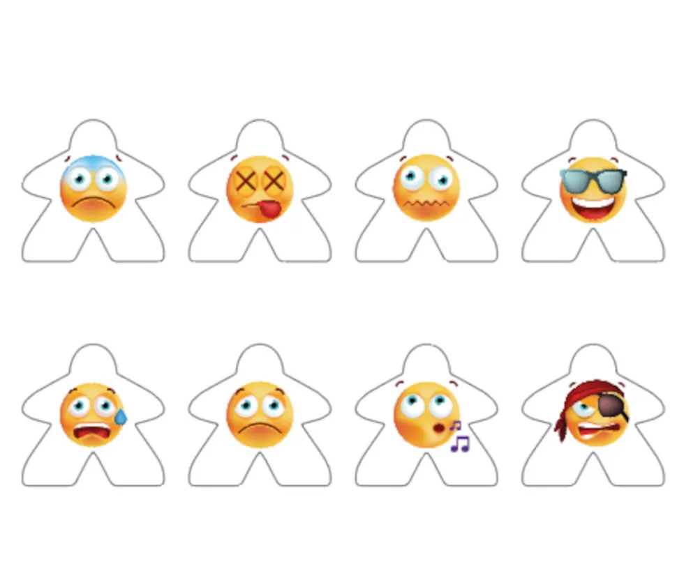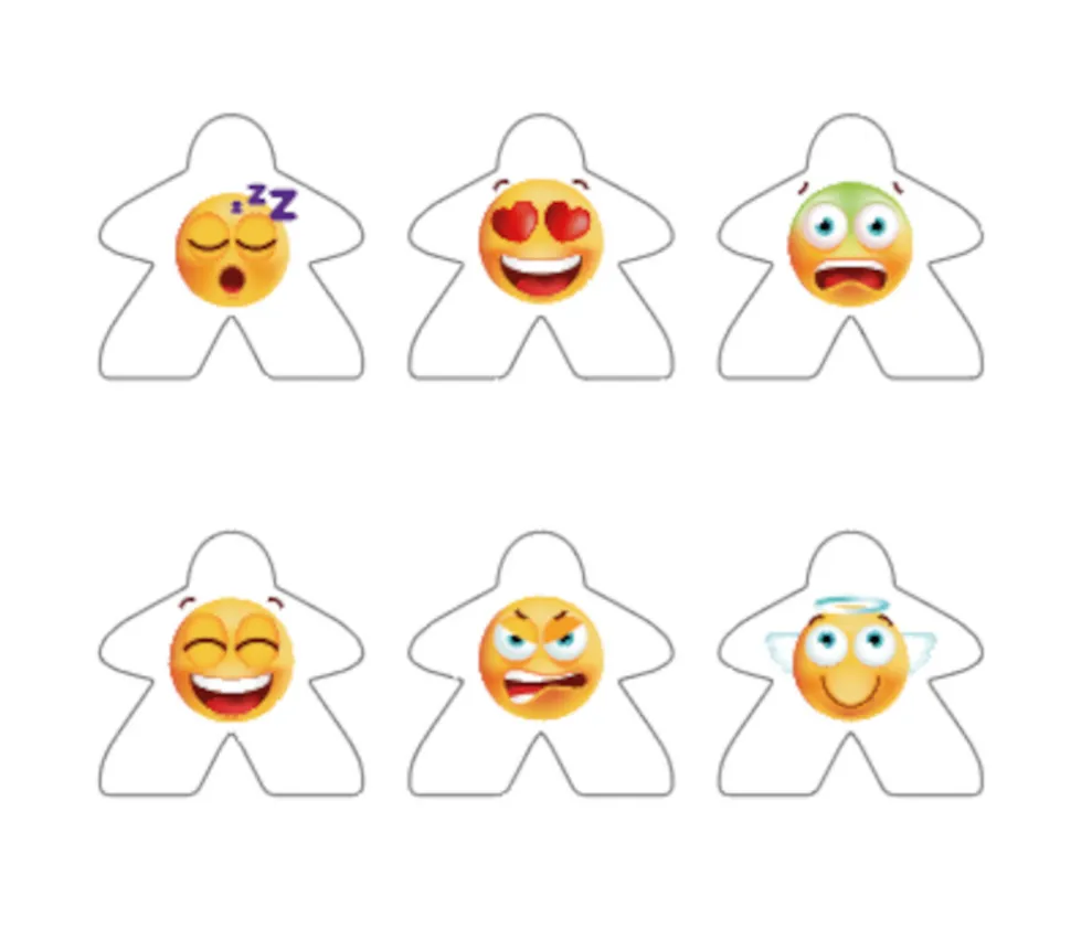 Pions meeples emoticône sympathiques pour donner à chaque joueur ou équipe des expressions spécifiques. Choisissez le pion joueur qui représente le plus votre humeur lors de votre partie.