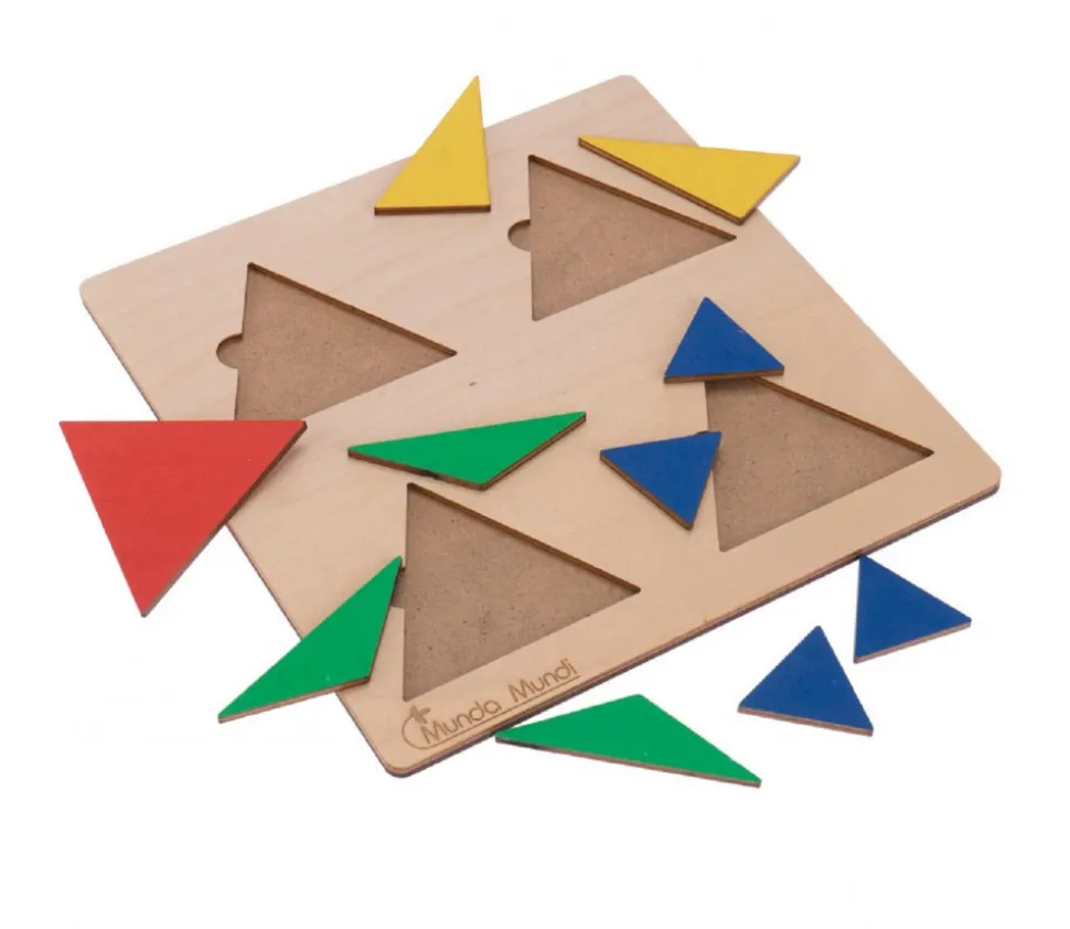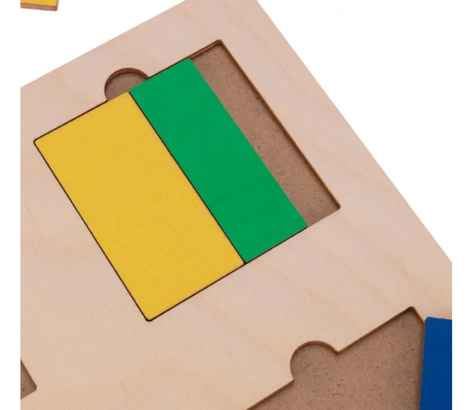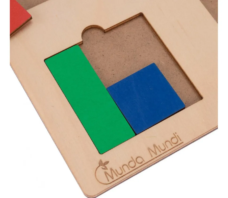 Ce kit comprend 3 plateaux de jeux de 24 x 24 cm en bois contreplaqué naturel. Pièces colorées à remettre à leur place.