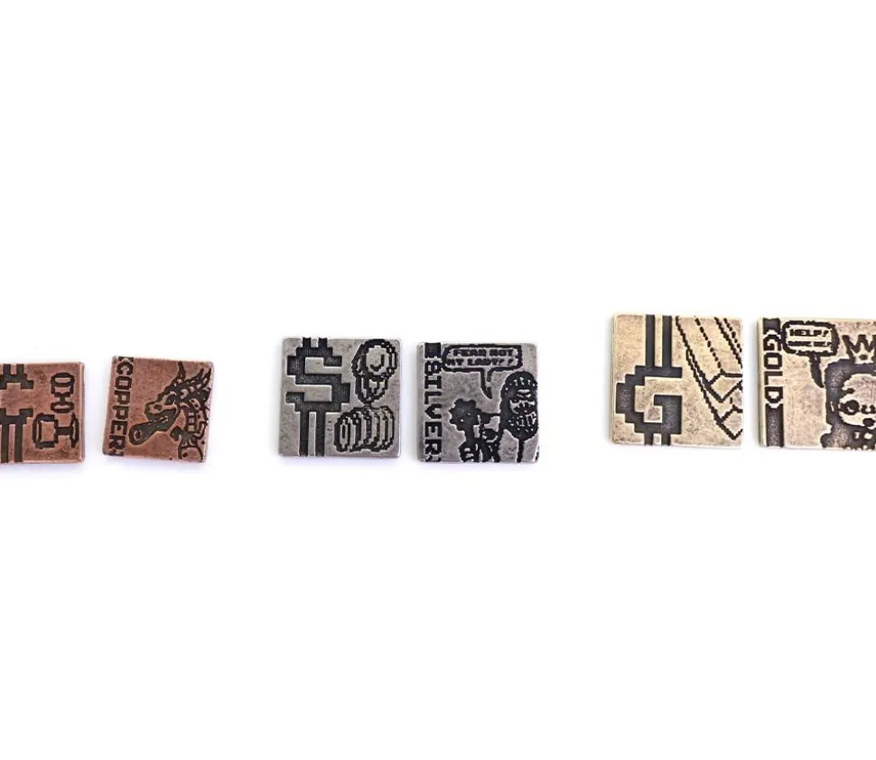 Ces pièces pour vos jeux sont en métal gravé sur les deux faces. Thème Pixel Art. Fabricant Drawlab.