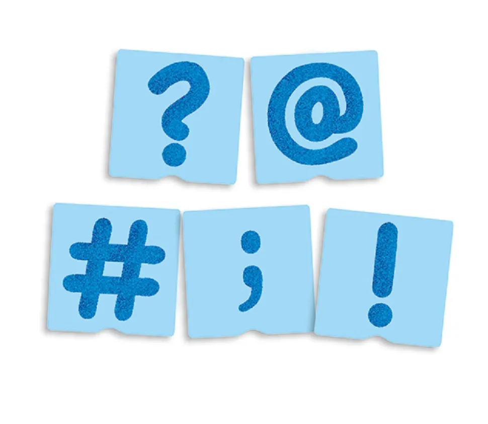 Grandes fiches rugueuses tactiles avec lettres et signes de ponctuation en relief.