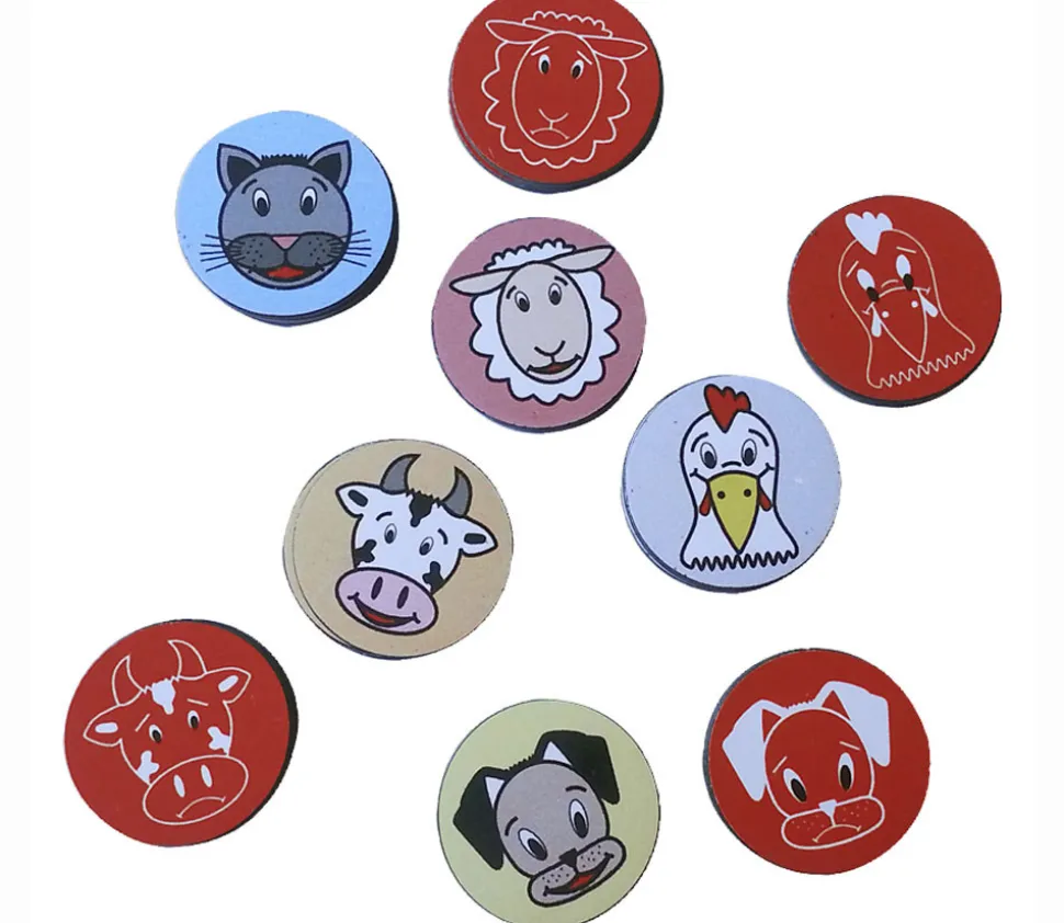 Pions magnétiques à double face offrent une polyvalence d’utilisation en classe avec les enfants. Chacun des cinq motifs d’animaux : poule, chien, chat, vache, mouton présente une face jaune positive et une face rouge négative. Chaque élève peut se voir attribuer un animal qui peut basculer du jaune au rouge en fonction de son comportement ou s’il oublie ses devoirs. Lorsque le comportement s’améliore, il suffit de retourner le jeton magnétique du côté jaune. De plus, ces jetons peuvent également servir à indiquer la présence ou l’absence.