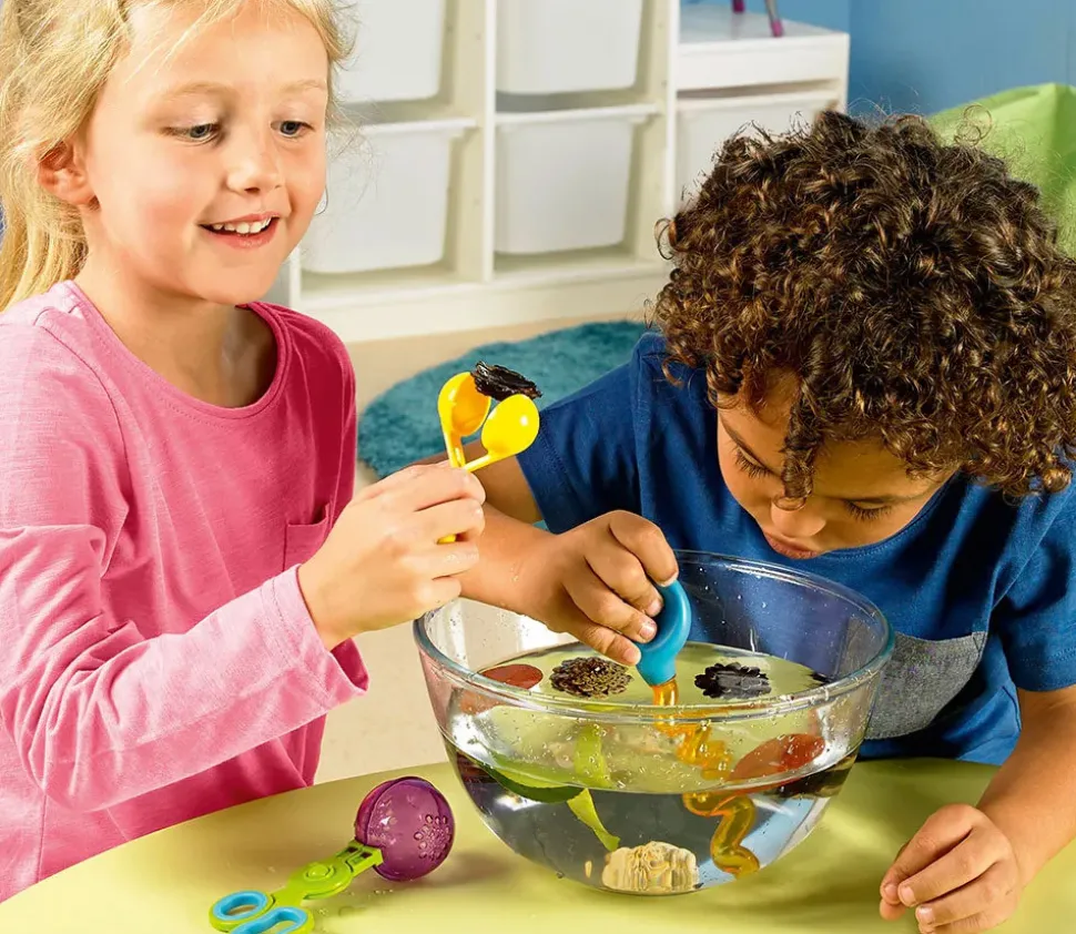 Jolis accessoires pour faire des exercices de sciences avec les enfants : manipuler de l’eau, du sable, des petits objets…
