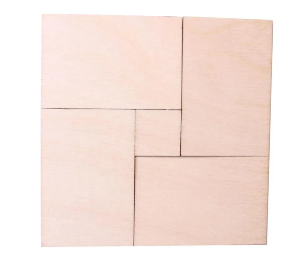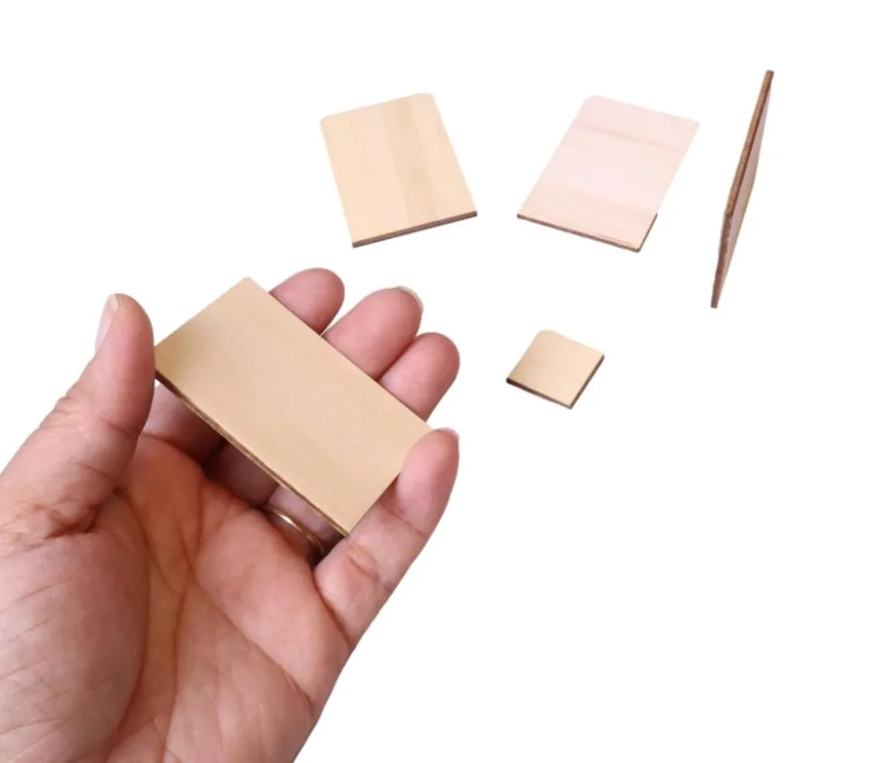 Tuiles rectangles plates en contre-plaqué avec les 2 faces lisses. 4 pièces rectangulaires à décorer.