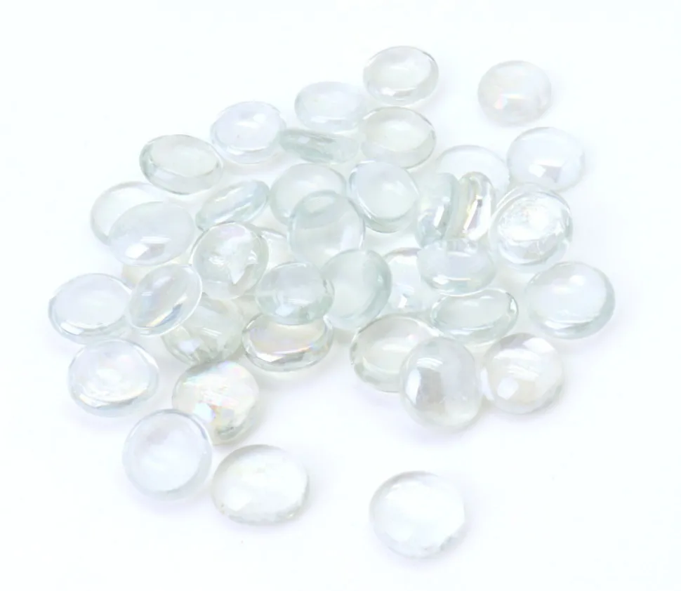 40 pierres gemmes transparents pour vos bricolages, jeux, décors ou autres utilisations. Petit galet en verre transparent d’environ 1.8 cm de diamètre. Boite avec 40 billes plates forme arrondie pour utiliser comme pions de repérage, de déplacement, de comptage pour vos jeux de rôle et jeux de société. Pierre de vie. Accessoire loisirs créatifs.