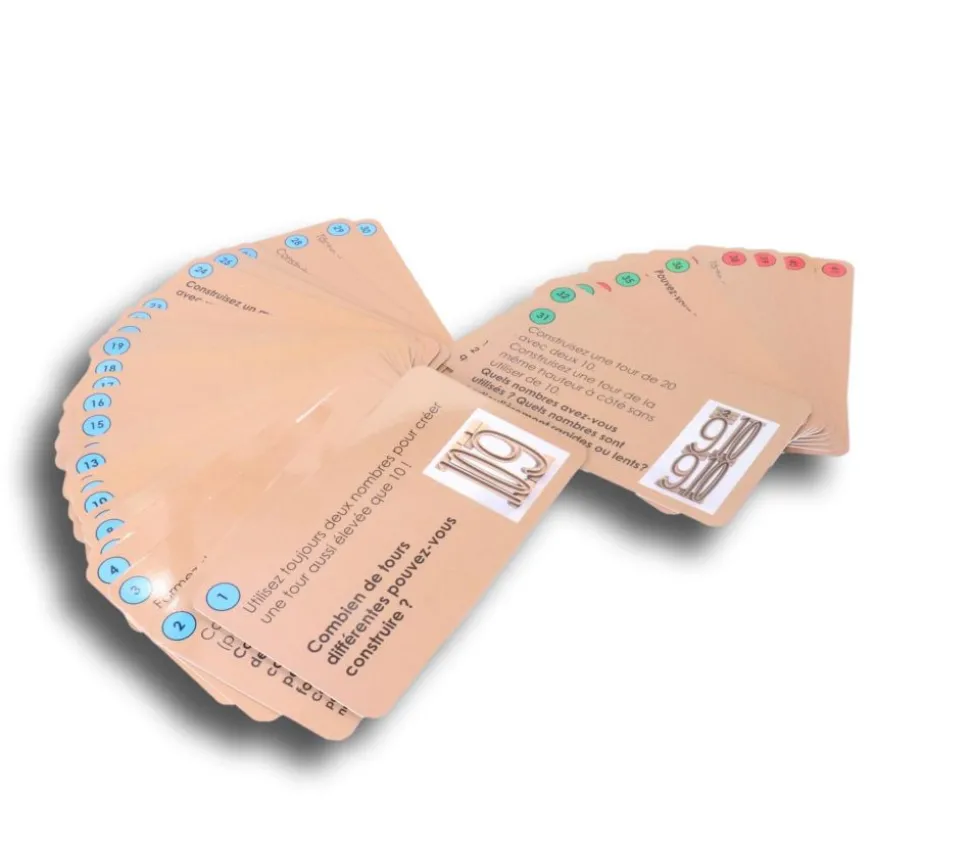 Set comprenant 42 fiches éducatives pour compléter le jeu la Tour des nombres vendues séparément.