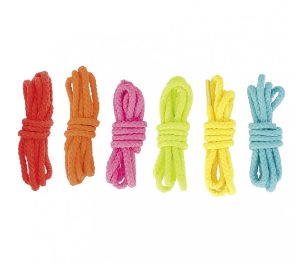 - 6 lacets en coton 6 couleurs : rose, rouge, orange, jaune, bleu, vert clair – longueur : 84 cm