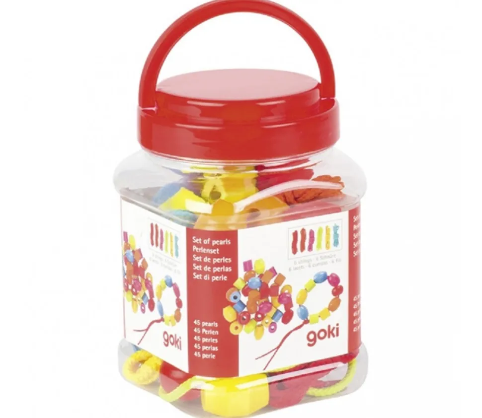 Boite de perles en bois percées GOKI comprenant :