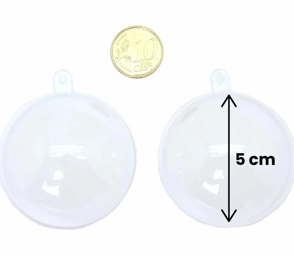 Lot de 5 boules en plastique cristal transparent à personnaliser. Boules de 5 cm de diamètre pour loisirs créatifs.