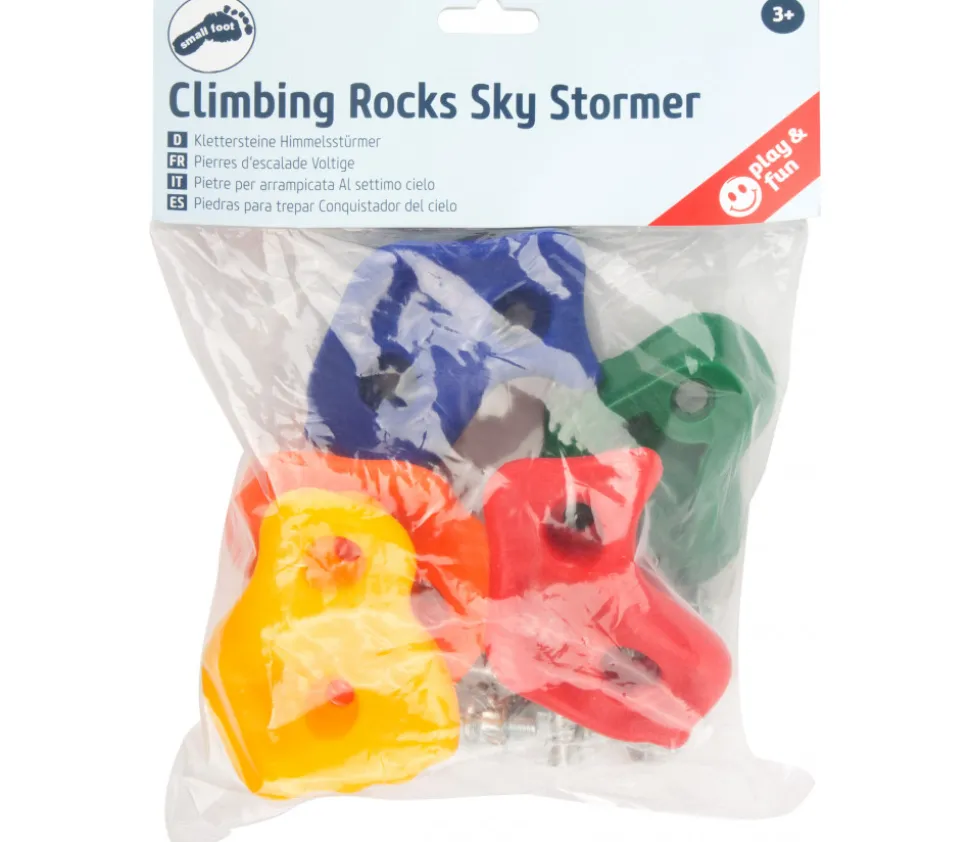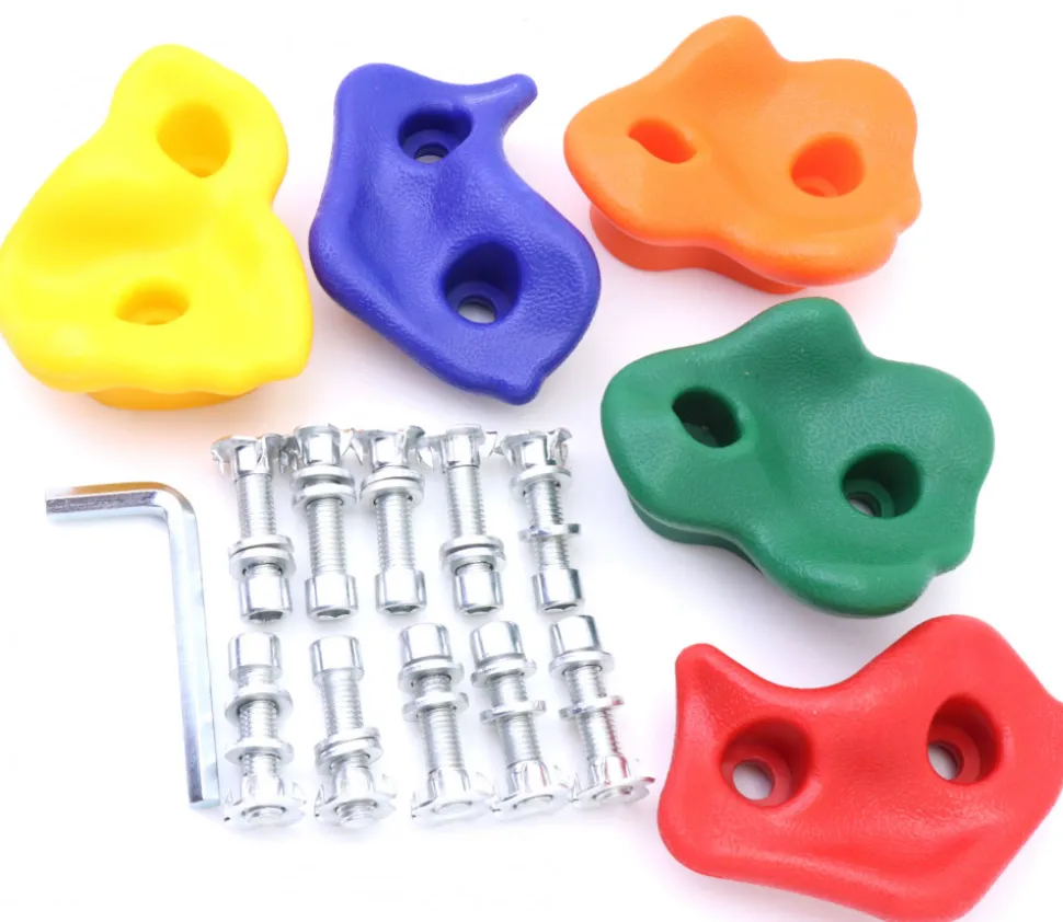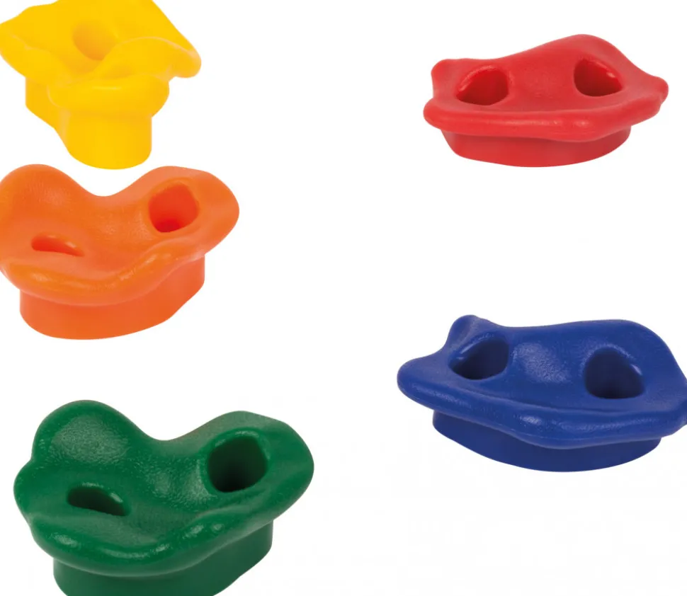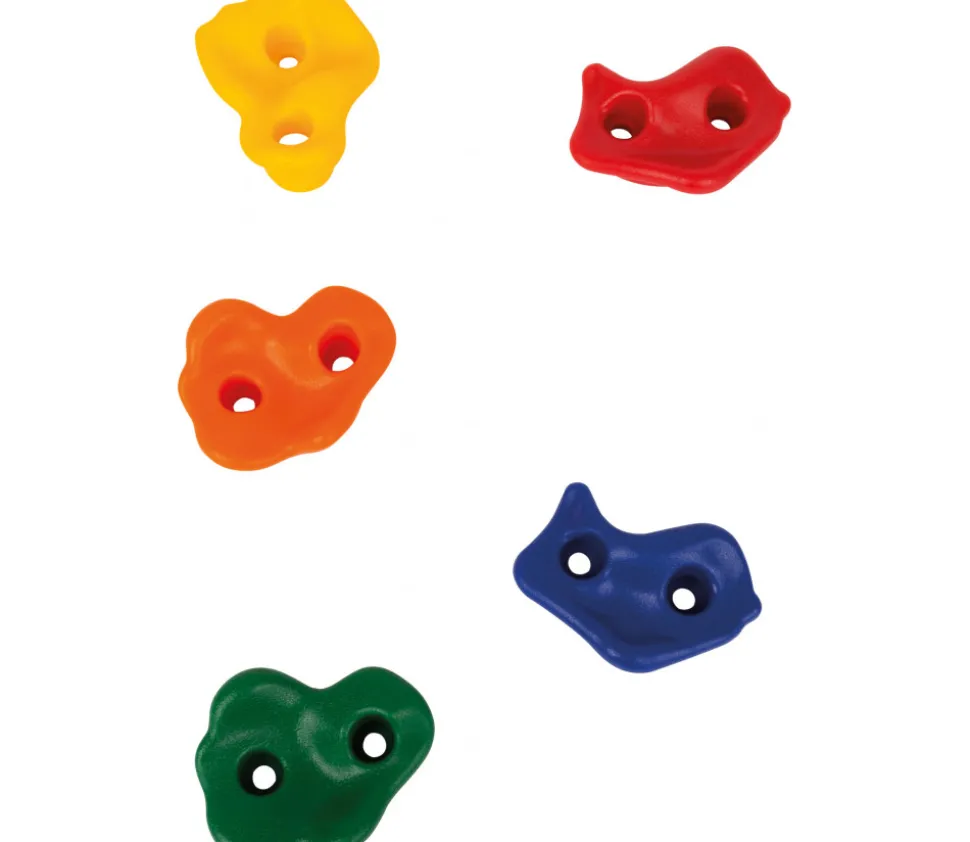 Set de 5 pierres d’escalades colorées en plastique à fixer (matériel de fixation inclus).