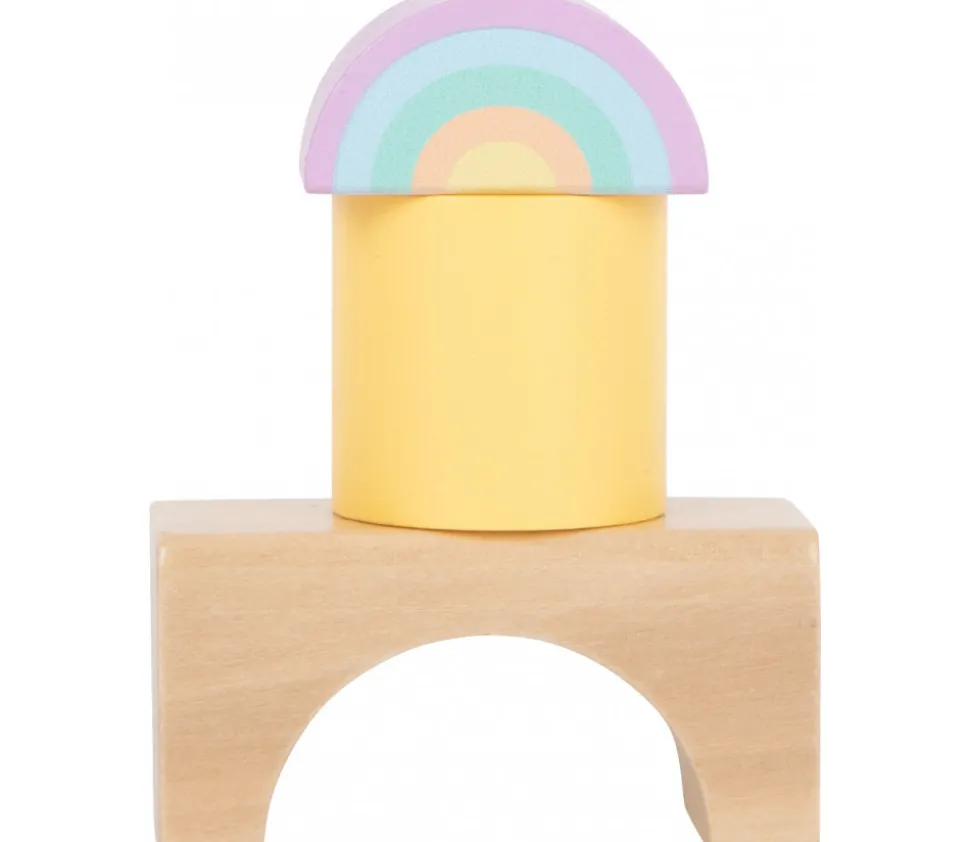 Empiler ces cylindres, triangles, pont et cubes pour construire des bâtiments : château, maison ou bâtiment biscornu, empiler les blocs. Un jeu indémodable pour apprentissage de la motricité et stimuler l’esprit créatif.