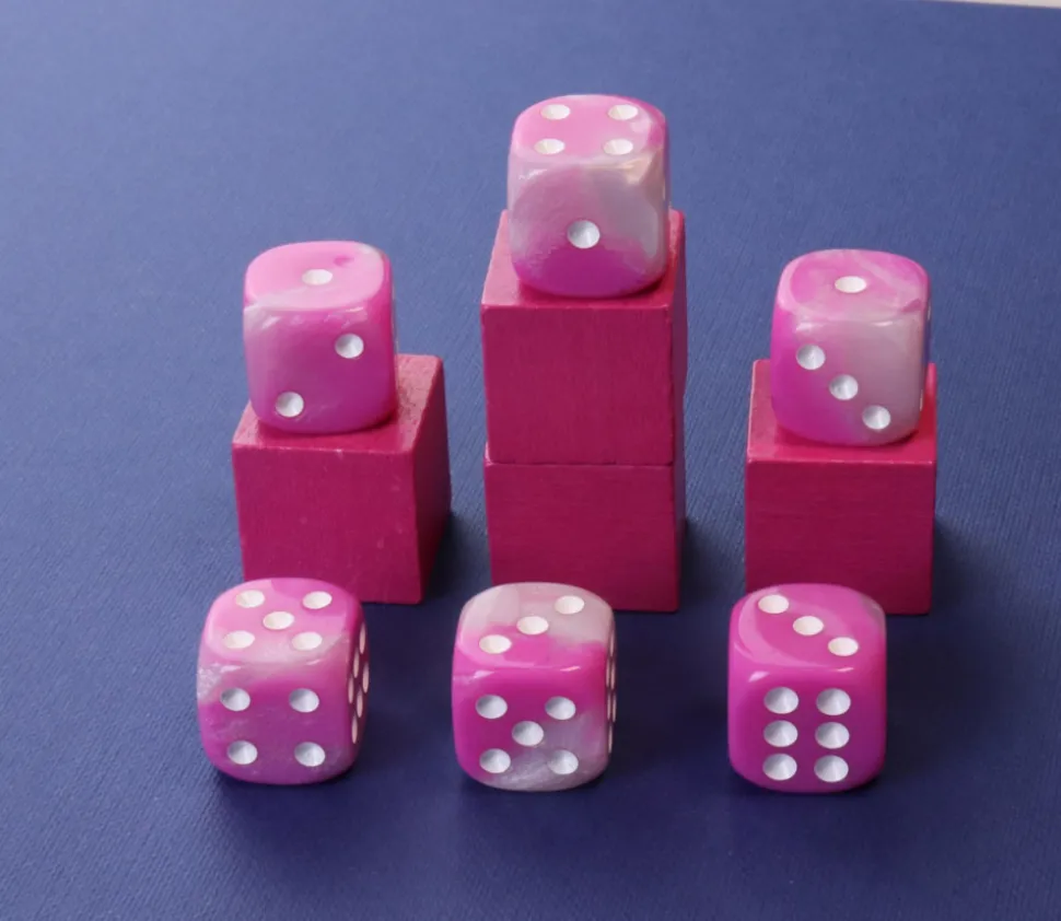 Dés en plastique coloré rose nacré