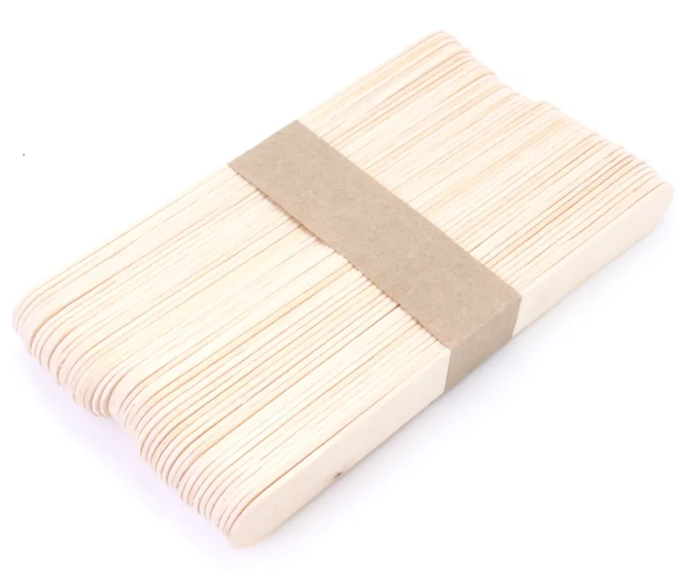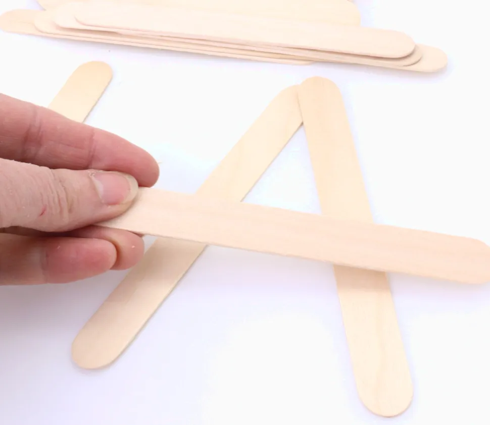 Environ 50 bâtons en bois naturel d’environ 15 cm de longueur et 1.8 x 0.18 cm largeur et épaisseur.