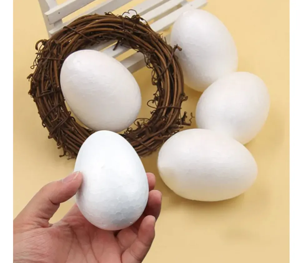 50 Oeufs blancs en polystyrène blanc de 4 tailles différentes à décorer : du mini au gros oeuf en passant par la taille standard.