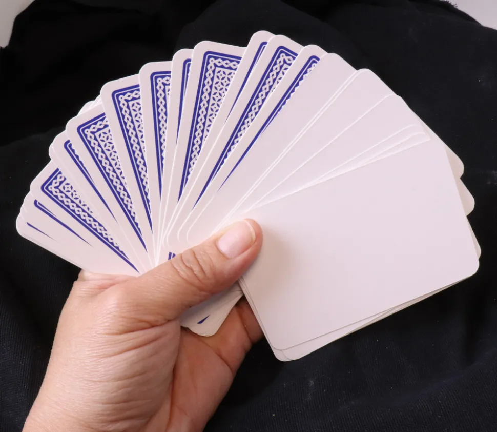 Jeux de cartes avec une face blanche qui permettent de créer un jeu maison ou pour faire des tours de magie.