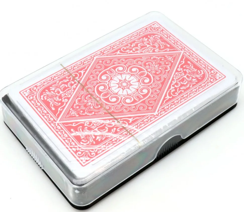 Jeu de 54 cartes internationales 100 % plastiques (avec marquage K et Q pour King et Queen). Cartes de jeux entièrement en plastique résistante. Ces cartes sont livrées dans une boite en plastique pratique pour le rangement. Ce jeu convient très bien pour le jeu de Bridge, Rami, coinche, poker… Index aux 4 coins. Cartes de 89 x 58 mm.