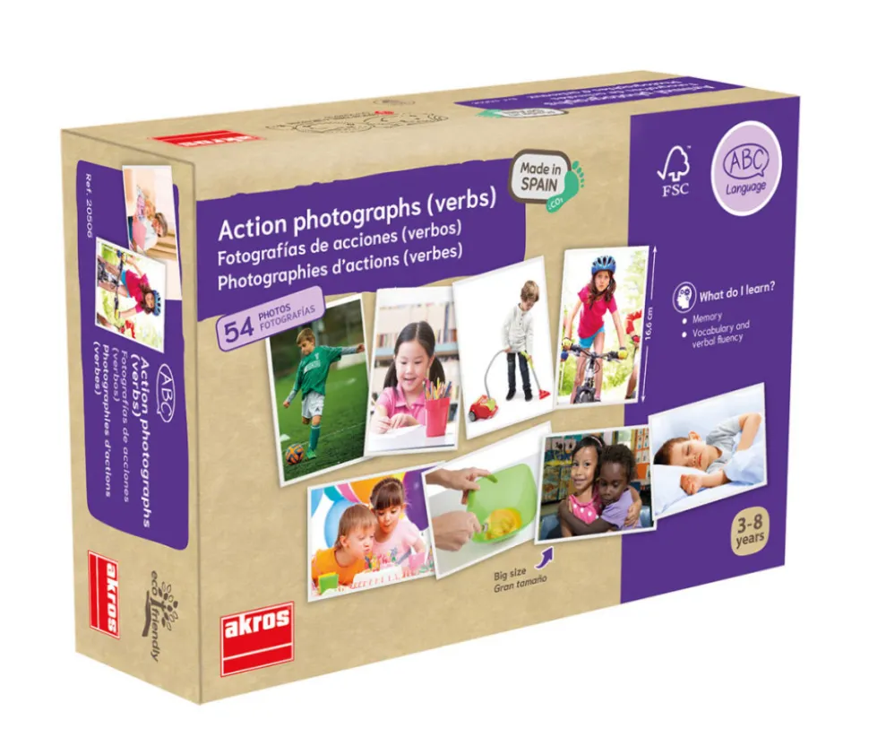 Jeu de cartes avec des photos en action pour développer le langage des enfants et exercices d’apprentissage du vocabulaire. Mémoire, vocabulaire, fluidité verbale.