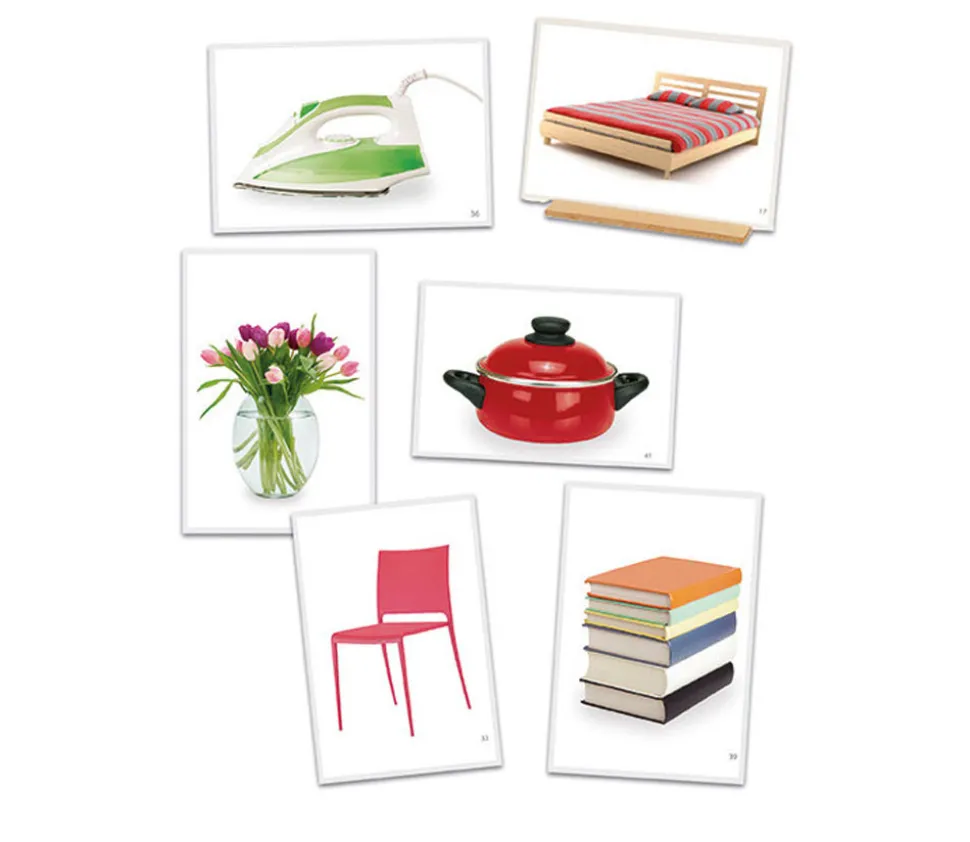 54 belles cartes illustrées avec les photos des objets de la maison.