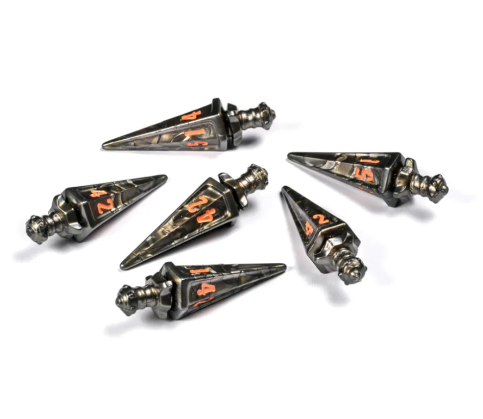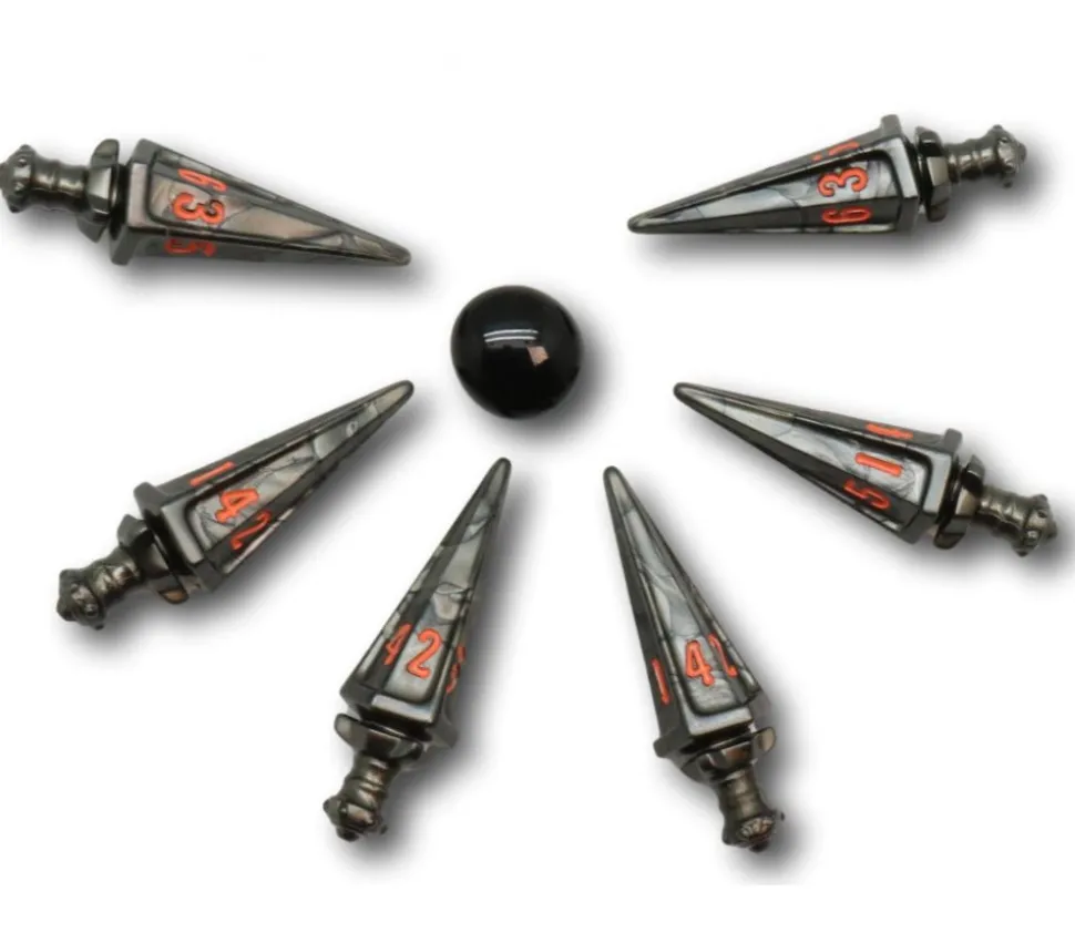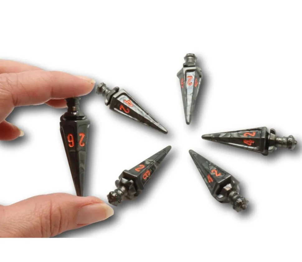 Lot de 6 dés en forme d’épée à 6 faces de couleur anthracite avec chiffres rouge