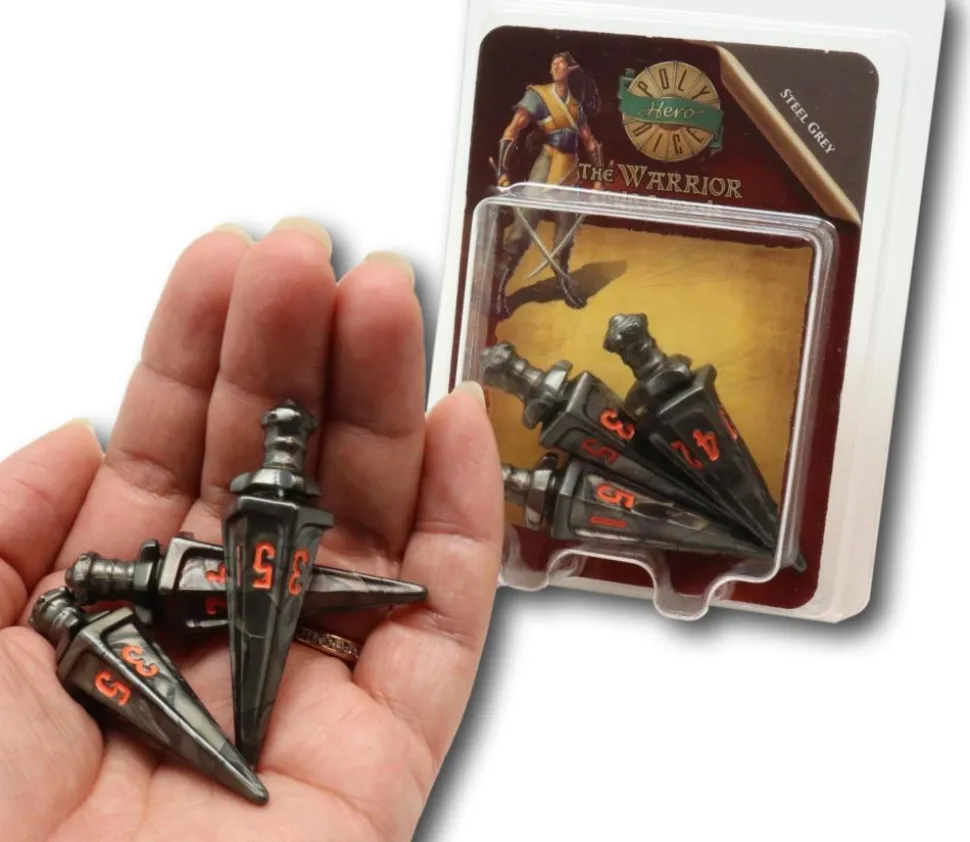 Ces dés s’utilisent comme des dés traditionnels, jetez les dés et ils rouleront jusqu’à s’arrêter sur une face de l’épée, le chiffre rouge sur le haut indiquera le score. Dés recommandés pour vos jeux de rôle et pour agrandir votre collection.
