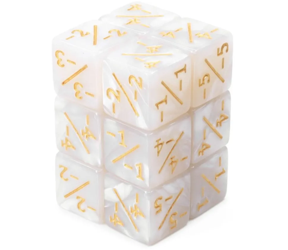 Ces dés sont idéaux pour tous les jeux de société qui nécessitent des modificateurs. Ces dés blancs sont les nombres négatifs. Dés cubiques aux coins droits.