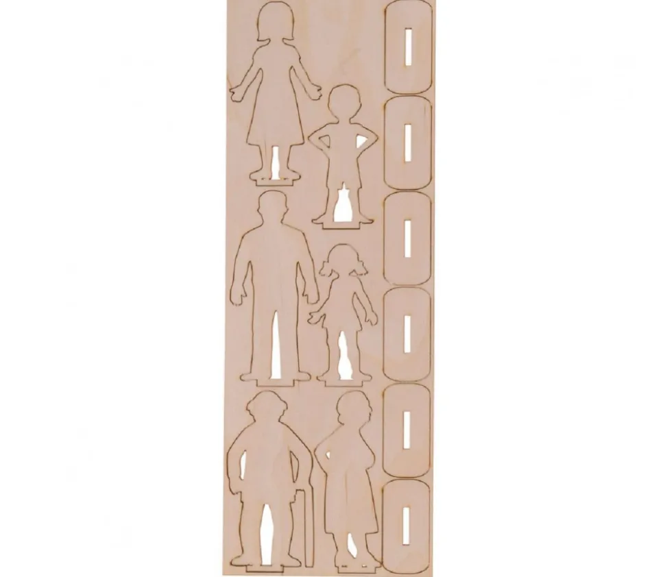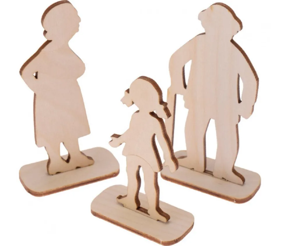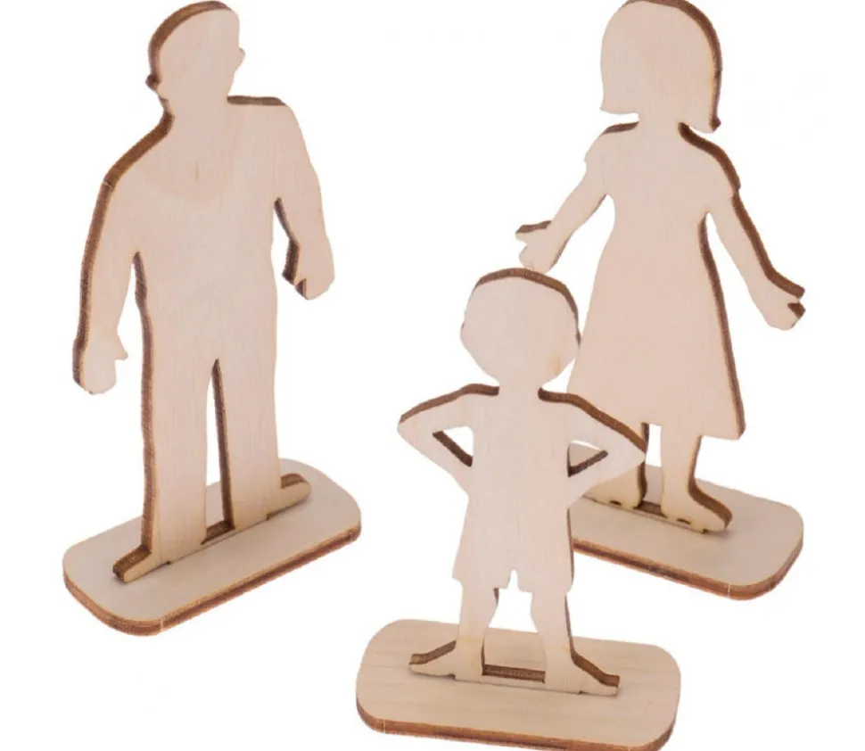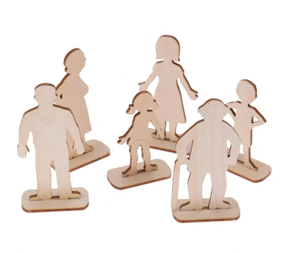 6 figurines famille en bois à personnaliser. Pour jeux de société, jeux éducatifs, loisirs créatifs.