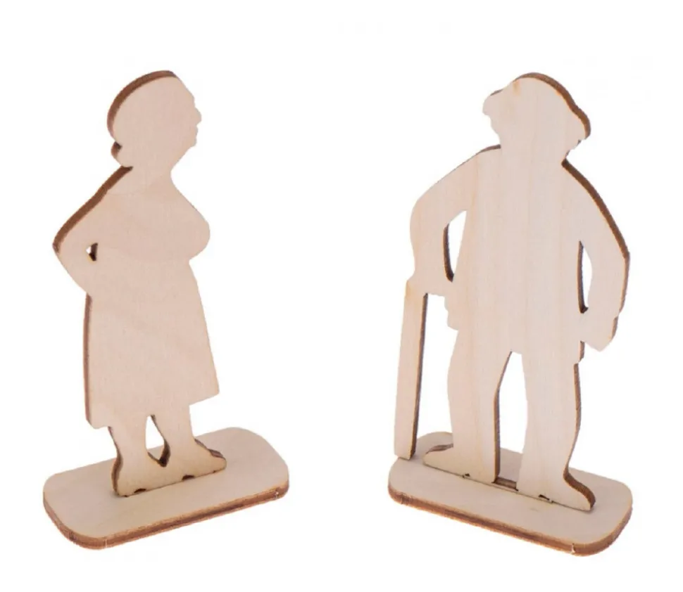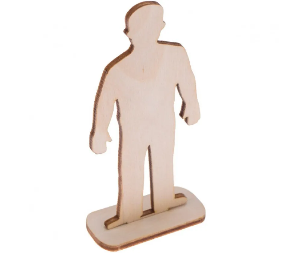 Les pièces sont à détacher d’une planche en bois et à assembler : personnage + support. Elles peuvent servir de pions de jeux et de décorations. Les enfants vont laisser libre cours à leur imagination pour customiser les personnages.