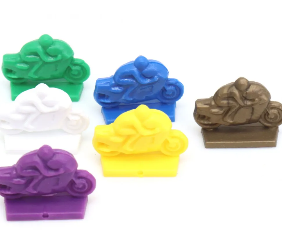 Pion de jeu moto de course en plastique. Lot de 6 pions en plastique.